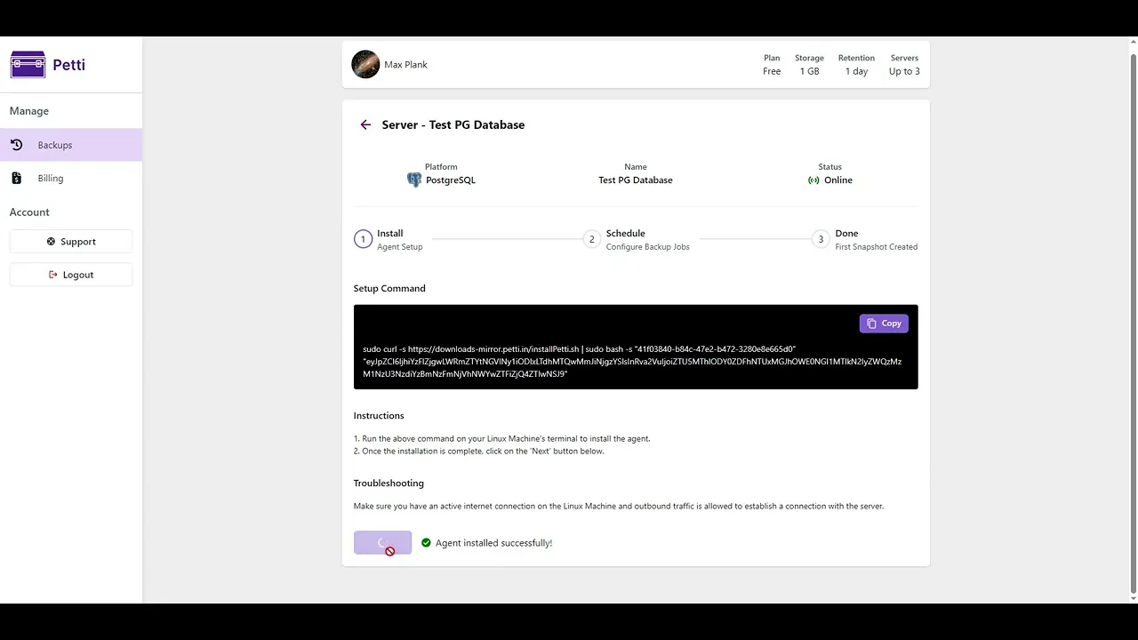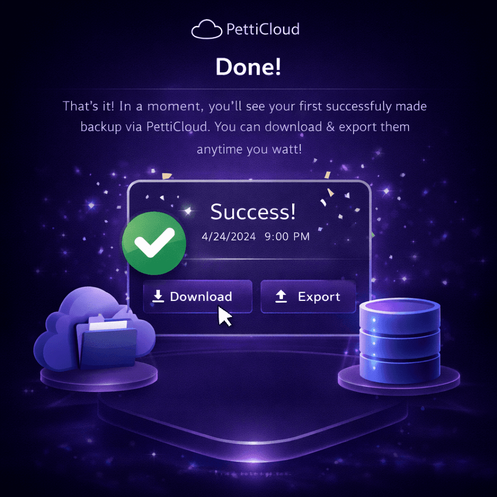 That’s it! In a moment, you’ll see your first successfully made backup via PettiCloud. You can download & export them anytime you want!
